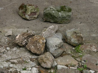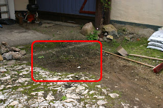 we started to look for paving stones ... And - have actually found that: in the garden, in the flower beds, in the former pond (even a gold mine for all sorts of things, most recently appeared on an old door ...):