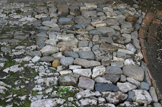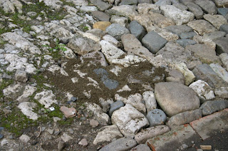 Because this area was transformed after each rainfall in a kind of wetland, we have decided to pave the missing piece. And of course we wanted to use as possible original patch. We have learned that much lack of old material that was removed during earlier renovations, is still to be found somewhere on the property. So