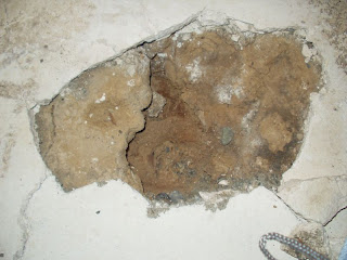 We scraped everything back out and then filled the hole with plaster - the same material that makes up the rest of the floor ...