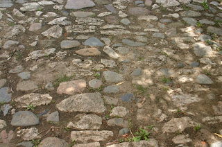 It was a terribly demanding job, but we did not use a vibrating plate, to obtain the characteristic roughness of the pavement.