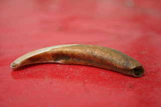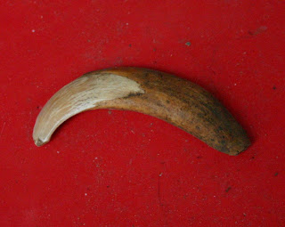 Ca. 5 cm long. The assumptions in the English blog predominantly go in the direction of "canine" - either a large dog or a boar. Other opinions?